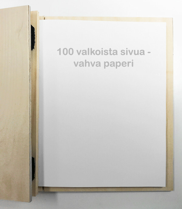 Denna elegant tillverkade Bastubok med träpärmar representerar finskt hantverk när det är som bäst. Boken innehåller 100 vita, blanka sidor – perfekt för bastugästers hälsningar, väderobservationer, bastudagar eller som gästbok i sommarstugan.