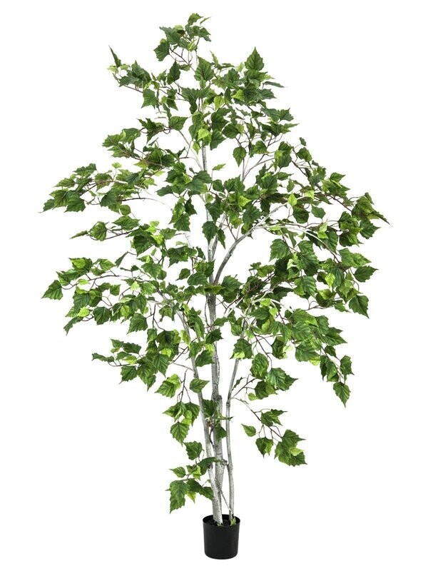 Ihanan kaunis suomalainen koivu -tekopuu ruukussa. Monisävyisen vihreät lehdet ja vaalean harmahtava/valkoinen runko luovat tekopuusta todella kauniin ja luonnollisen näköisen.