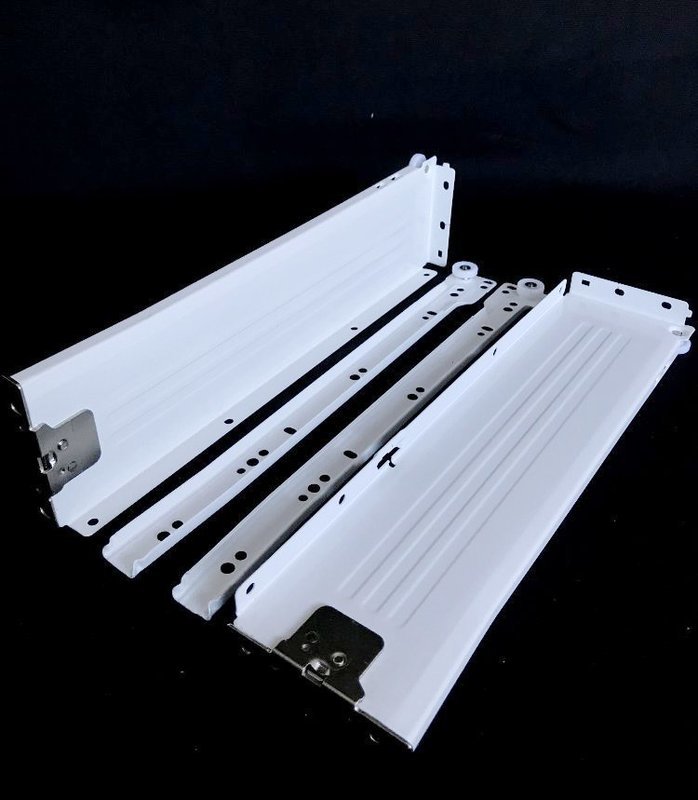 Paketti sisältää kiskot, laidat ja ruuvikiinnitteiset etusarjakiinnikkeet. Mikäli haluat, voit tilata valkoisesta melamiinista valmistetut pohja- ja takalevyt juuri sinun kaappiin sopivilla mitoilla. Tätä varten tarvitset kaapin rungon SISÄLEVEYDEN (Ei ulkomittoja) ja lisäät sen sille varattuun kenttään. Mikäli haluat eri mittaisia kirjoita kaikki mitat ja kappalemäärät kenttään. Puuseppämme on sinuun tarvittaessa yhteydessä.