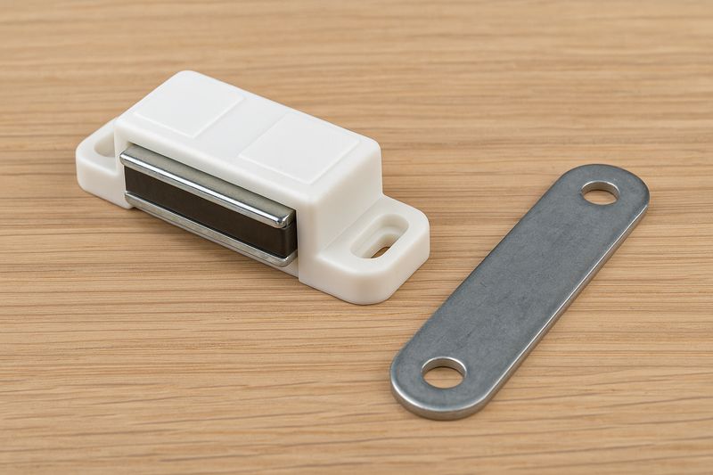 Valkoinen magneettisalpa – veto 6kg + metallilevy.