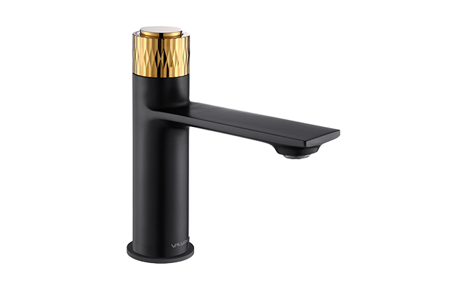 Erittäin kaunis mattamusta/KULTA pesuallashana, jossa on kätevä Clic-on-toiminto. Hana laitetaan päälle/suljetaan painamalla päällä olevaa nappia ja lämpötila säädetään pyörittämällä (katso video alempaa). Tämä on markkinoiden upein ja näyttävin hana! Hana vastaa ensimmäisen kuvan hanaa – muut kuvat esittävät hanan käyttöä.