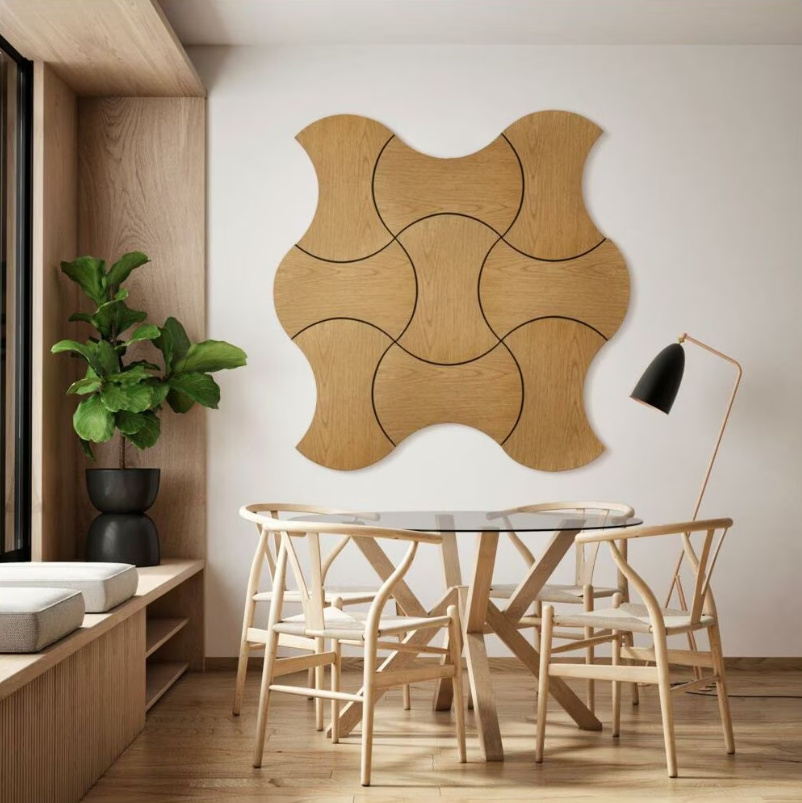 Luonnonviilulla tai puumaisella viilulla päällystetyt MDF:stä valmistetut seinäpaneelit ovat loistava sisustus elementti kaikkiin tiloihin. Puun monimuotoisuus ja luonnolliset värit tarjoavat rajattomat mahdollisuudet luoda sommitteluja ja muotoja. Jokaisessa paneelissa on erityisesti kulmaan leikattu reuna, joka sijoittaessaan luo varjovaikutelman, joka lisää seinään 3D syvyyttä.