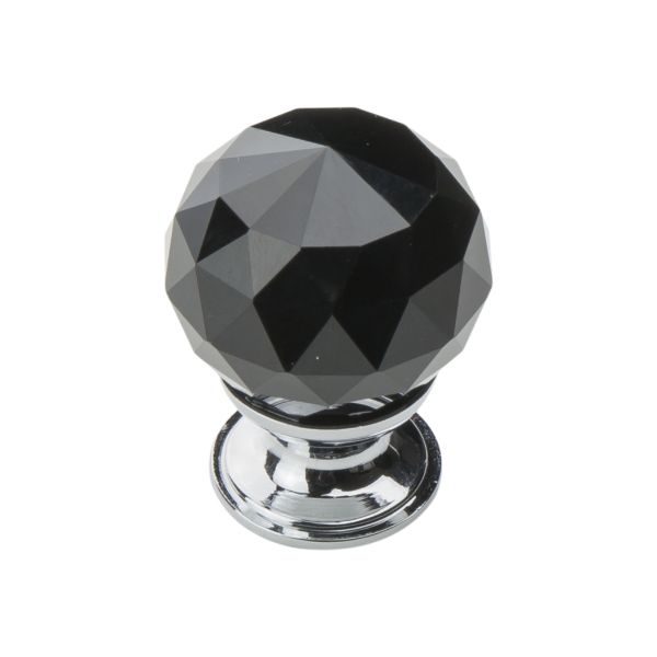 Tuo huonekaluihisi ylellisyyttä ja tyylikkyyttä mustalla ”kristalli” -nupilla. Lasinen pinta ja krominen jalkaosa yhdistyvät luomaan upean kontrastin, joka korostaa huonekalujesi ulkonäköä.