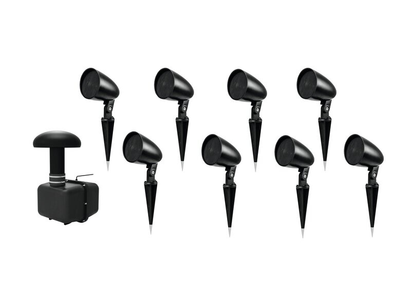 Tämä säänkestävä upotettava subwoofer tarjoaa täyteläisen äänen ulkotiloihin, ja mukana tulevat 8 puutarhakaiutinta maakiilalla täydentävät kokonaisuuden, luoden täydellisen äänijärjestelmän ulkokäyttöön.