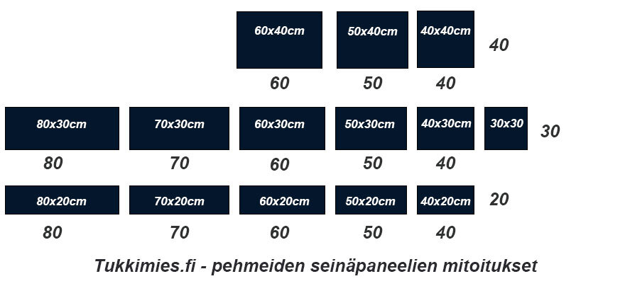 Paneelin paksuus on noin 3,5cm. Paneelin pinta on ensiluokkaisen laadukkaalla kankaalla verhoiltu. Pohja on MDF-levyä. Kankaan ja pohjan välissä on laadukasta antiallergista vaahtoa – tuote on allergiavapaa ja sillä on Oeko-Tex® Standard 100 luokitus. Sertifikaatti vahvistaa, että tarjoamamme tekstiilituotteet eivät sisällä haitallisia aineita sellaisissa pitoisuuksissa, joilla on haitallinen vaikutus ihmisten terveyteen. Merkki myönnetään vain tekstiileille, joiden komponentit on testattu jokaisessa tuotantovaiheessa ja joista on saatu positiivisia tuloksia. Paneelin pinta on poikkeuksellisen pehmeä ja miellyttävä koskettaa.