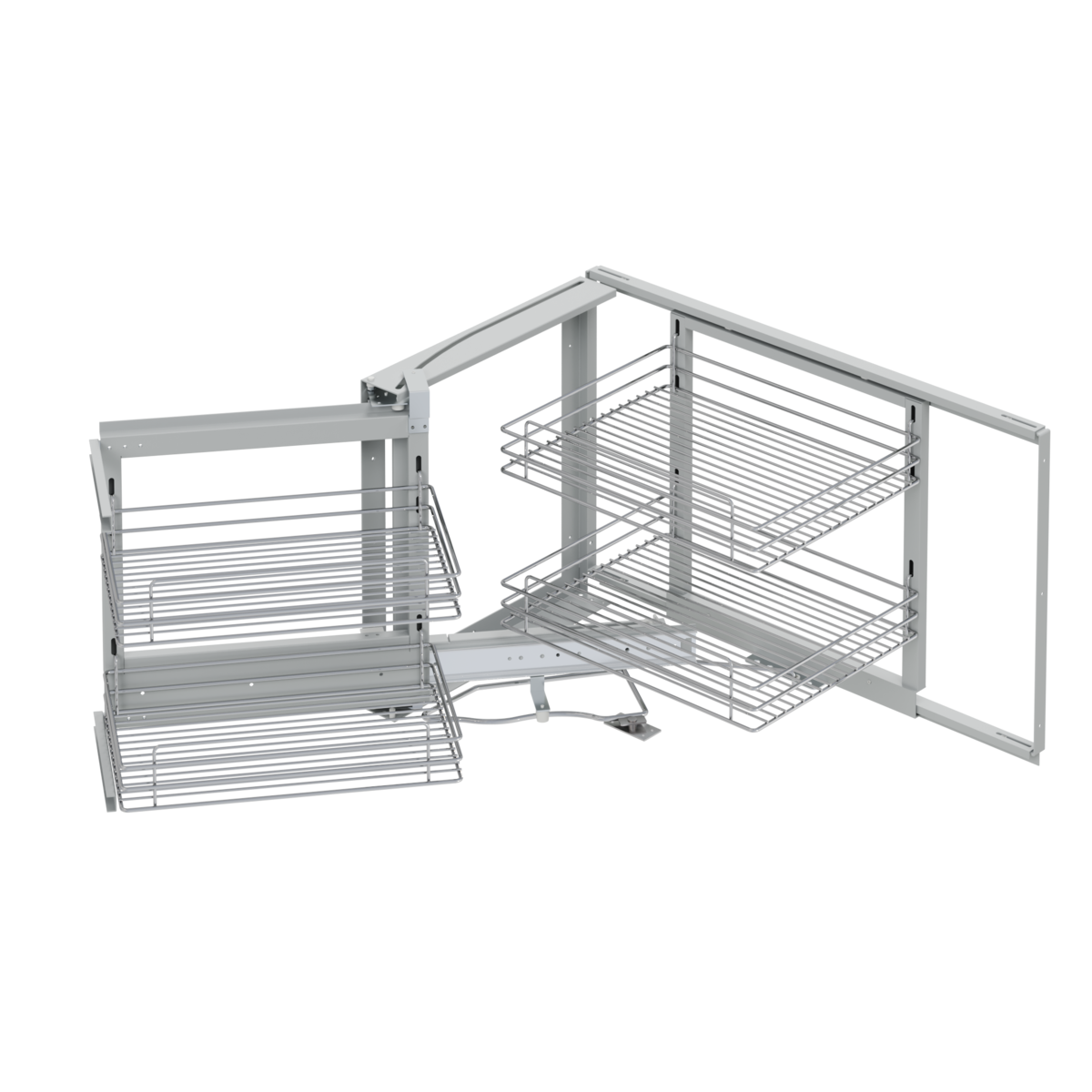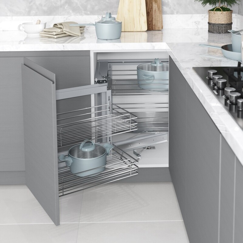 Hiipakan erittäin laadukas piilokulmakaapin mekanismi on suunniteltu tuomaan järkeä ja käytännöllisyyttä keittiösi piilokulmakaapille. Tämä mekanismi edustaa markkinoiden huipputuotetta, ja sen avulla voit hyödyntää piilokulmakaapin tilan täysimääräisesti.