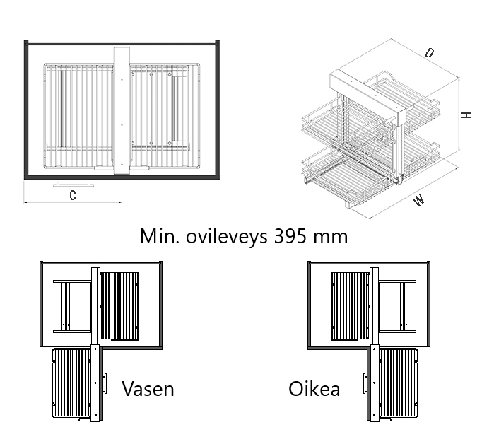 - Kätisyys: Huomioi kätisyys ja tarkista kuvista oikea malli. Voit valita oikean mallin valikosta varmistaaksesi, että mekanismi sopii saumattomasti keittiösi asettelun kanssa.
