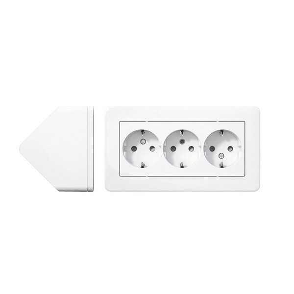 - Käyttötarkoitus: Tämä 3-osainen pistorasia on suunniteltu erityisesti kulma-asennukseen ja voidaan asentaa vaaka- tai pystyasentoon esimerkiksi välitilaan keittiökaappien alle.