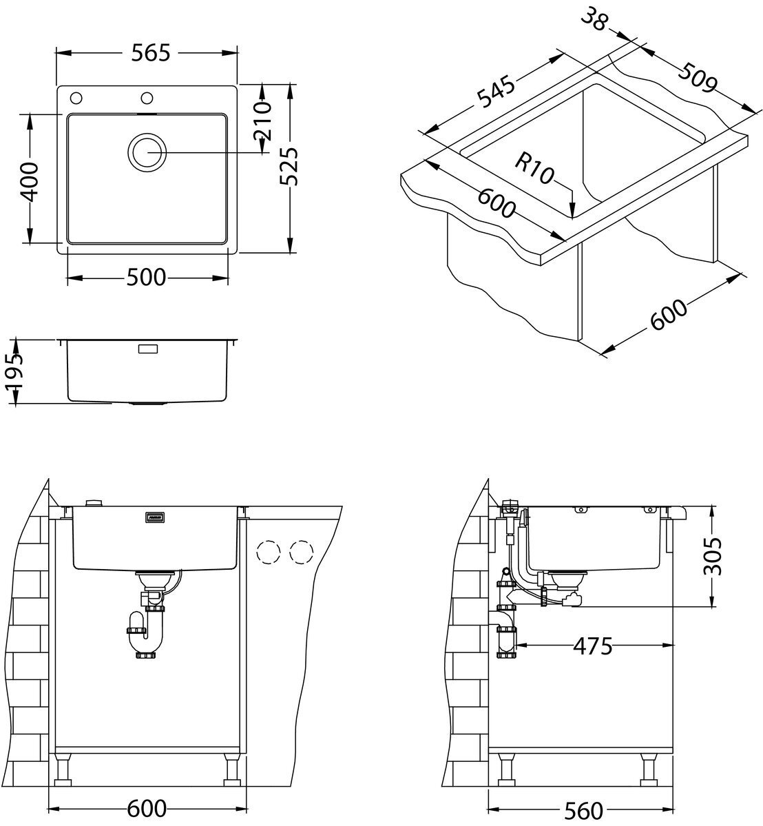 • Kokonaismitat: 565 x 525 mm