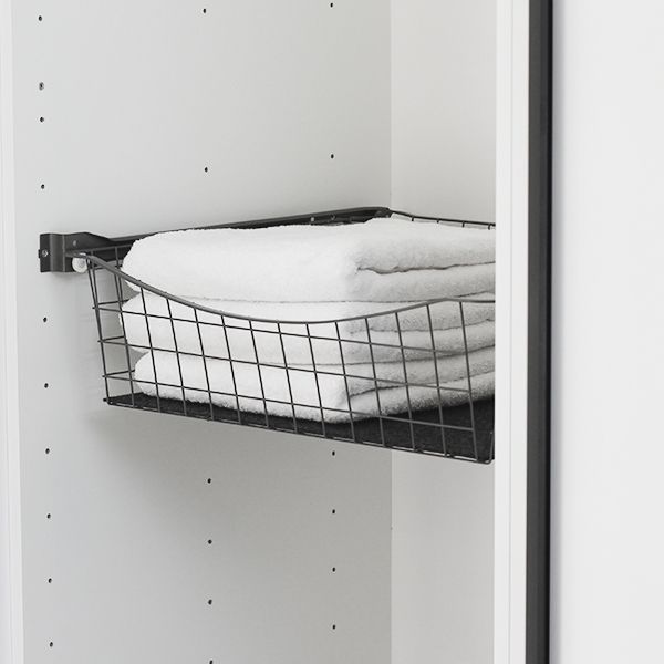 Saatavana kahdelle eri rungon paksuudelle: 16 mm ja 18 mm, jolloin kaapin sisäleveys on vastaavasti 568 (16mm) mm tai 564 mm (18mm). Valitse valikosta sopiva kisko. Tämä tekee Roller korista joustavan vaihtoehdon monenlaisiin kaappeihin. Valitse kiskot valikosta. Koria voi käyttää myös ilman kiskoja esim. hyllyn päällä yms.