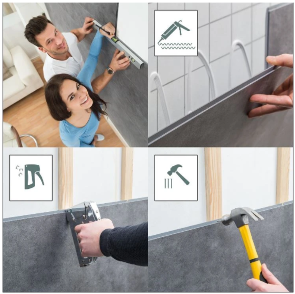 Vinyyli voidaan kiinnittää lähes kaikilla yleisimmillä kiinnitysmassoilla, niittaamalla tai naulaamalla pontista.