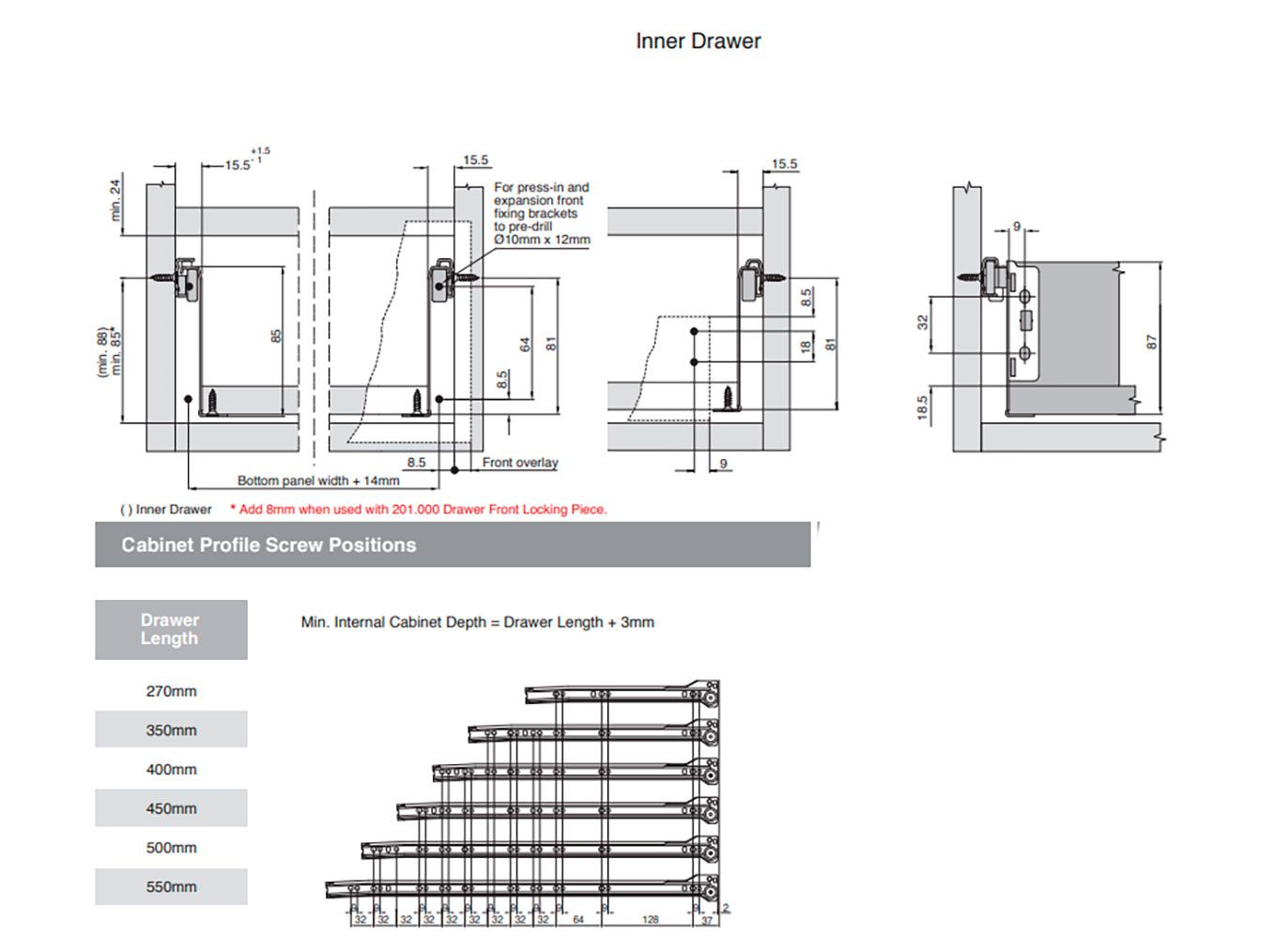 📏 Useita syvyysmittoja – Valitse sopiva pituus: 270 mm, 350 mm, 400 mm, 450 mm, 500 mm, 550 mm.