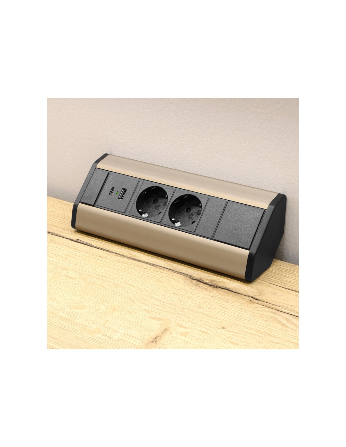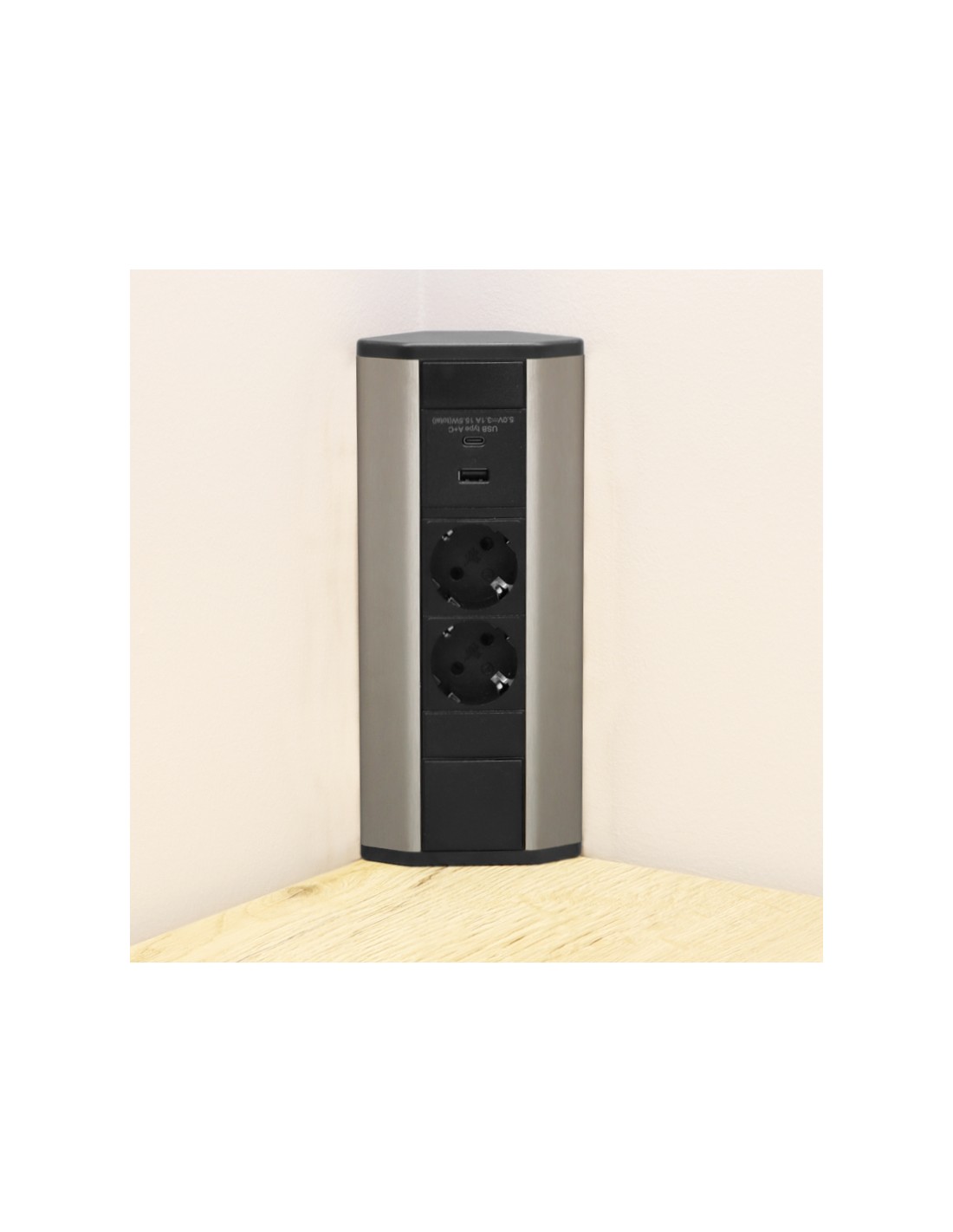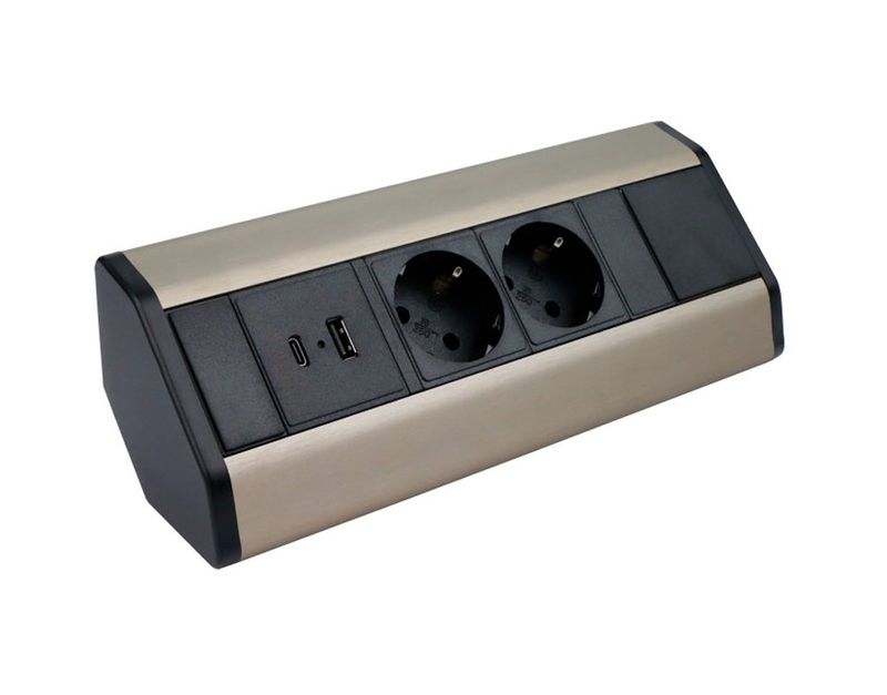 SOLINA CORNER 1 USB A&C – kulmapistorasia – Shampanja teräs