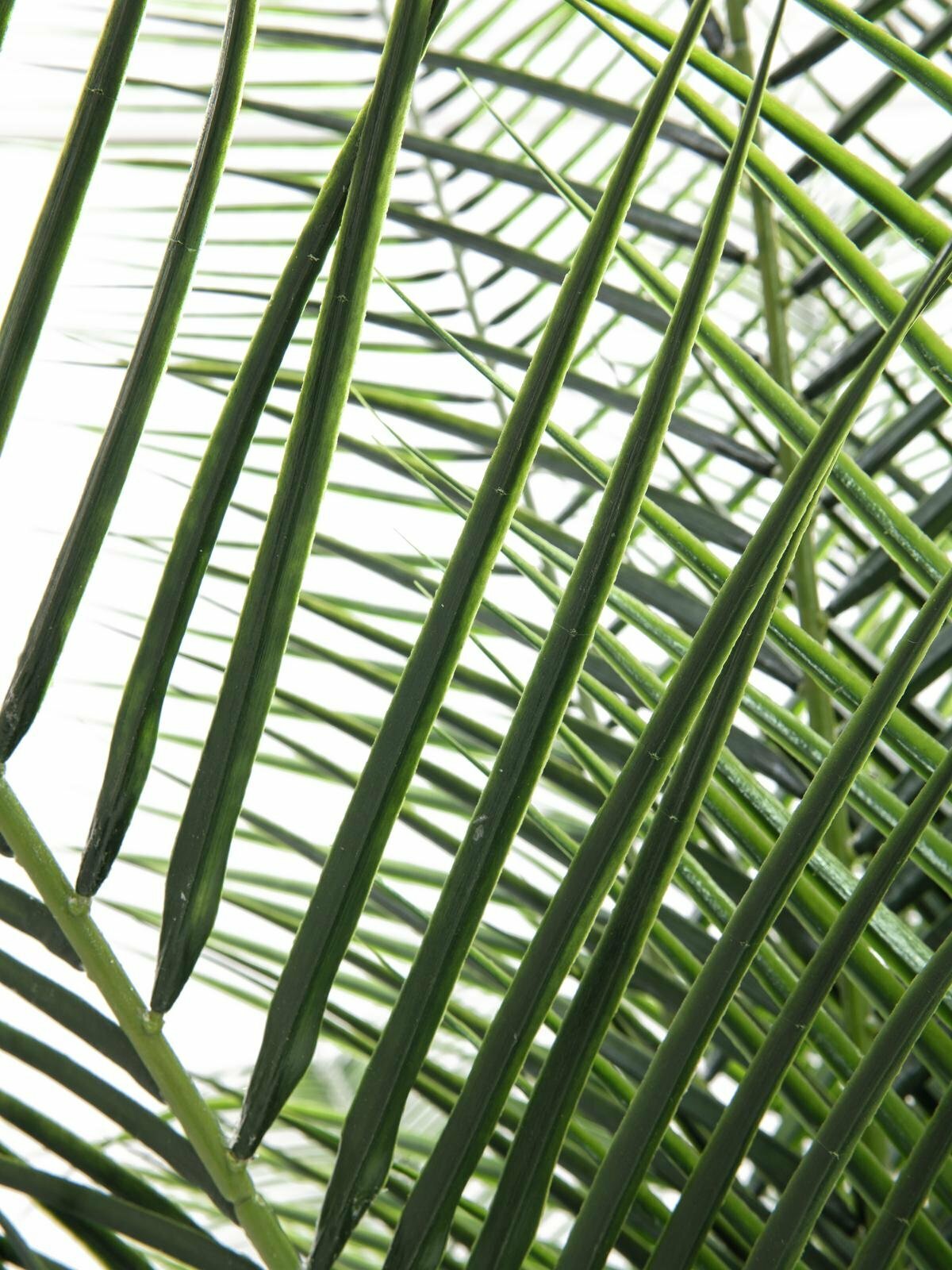 Upean näköinen taatelipalmu ruukussa. Näyttävän suurikokoiset lehdet ja luonnollisen monimuotoinen runko luovat tekokasvista todella kauniin ja luonnollisen näköisen.
