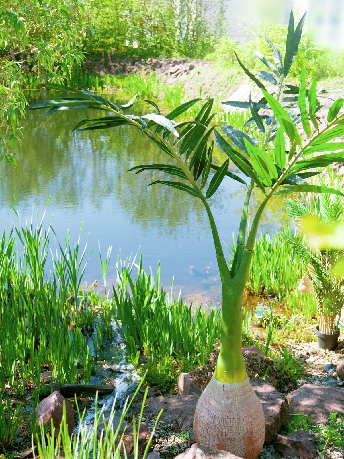 Aidon ja luonnollisen näköinen taatelipalmu. Näyttävän suurikokoiset lehdet ja luonnollisen monimuotoinen runko luovat tekopuusta todella kauniin ja luonnollisen näköisen.