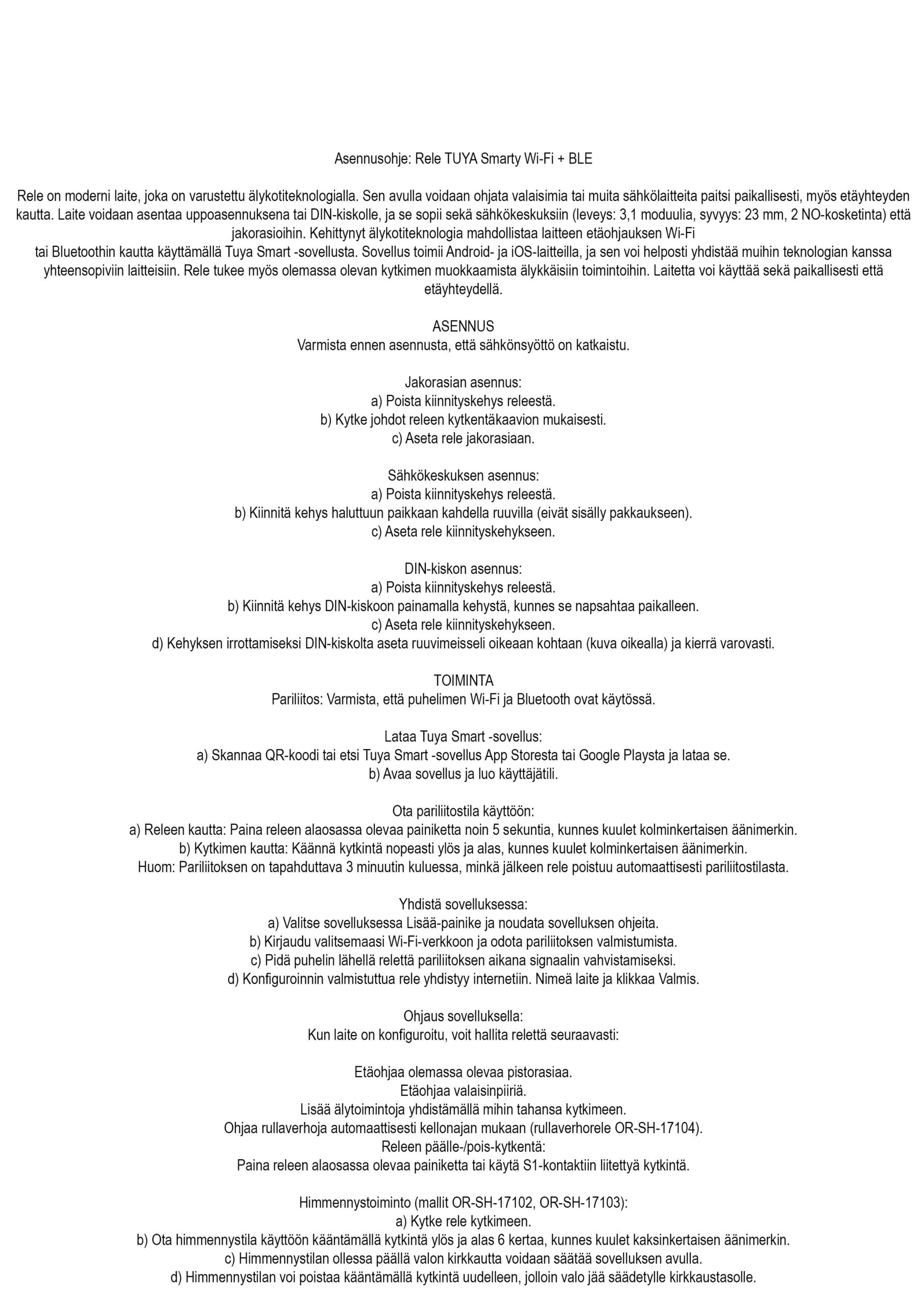 - Laajennettavissa muiden Tuya Smart -yhteensopivien laitteiden kanssa.