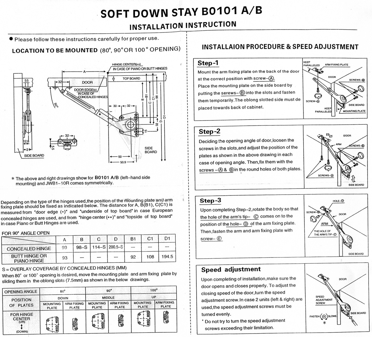 Mekanismin nopeus on säädettävissä. Katso kuvista tarkemmat mitat ja asennusohjeet.